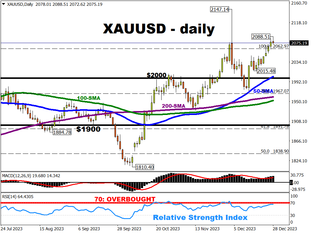 However, for the immediate future, big resistance may arrive around current levels, as the precious metal has struggled to stay above $2070 since 2020.