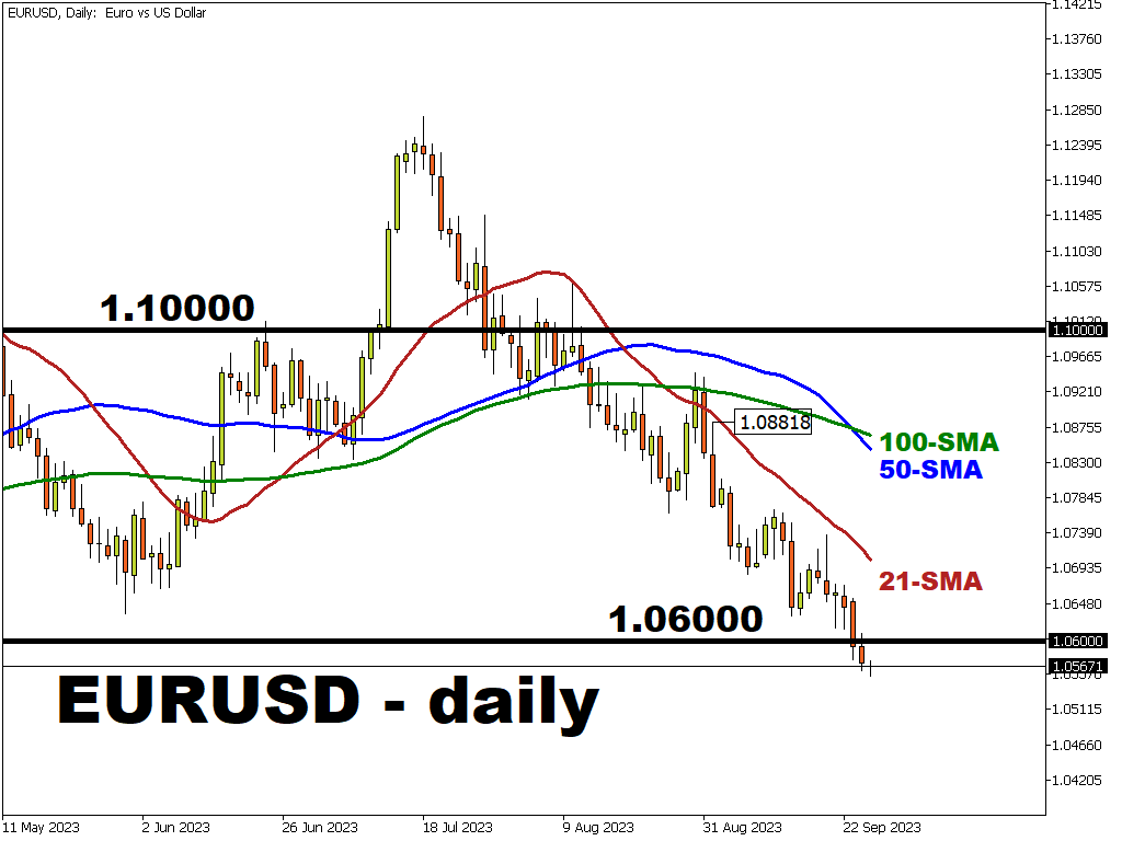 A breakdown through key support above 1.06 means the March low is now in play at 1.0516.