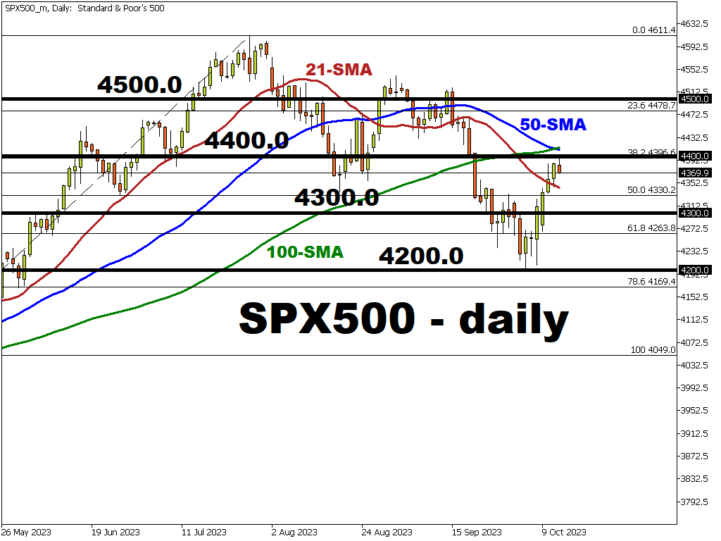 • Next potential resistance level is at 4400 (round number)/4396.6 (38.2 Fibonacci level)