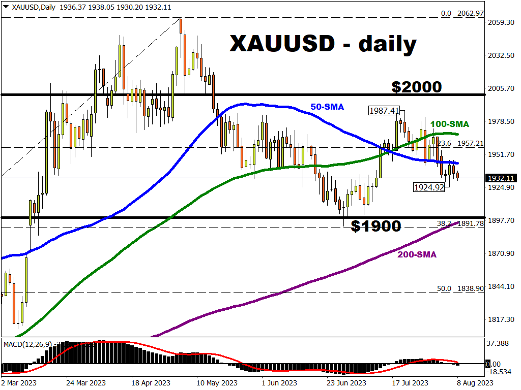 Gold is down for a third week in a row and nearing last week’s bottom at $1924.92.