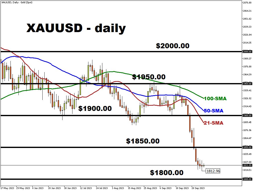 The US initial jobless claims reading, released yesterday (Thursday, Oct 5th) came in lower-than-expected at 207K (vs 210K forecasted), reinforcing XAUUSD bull’s concerns of another Fed interest rate hike this year.