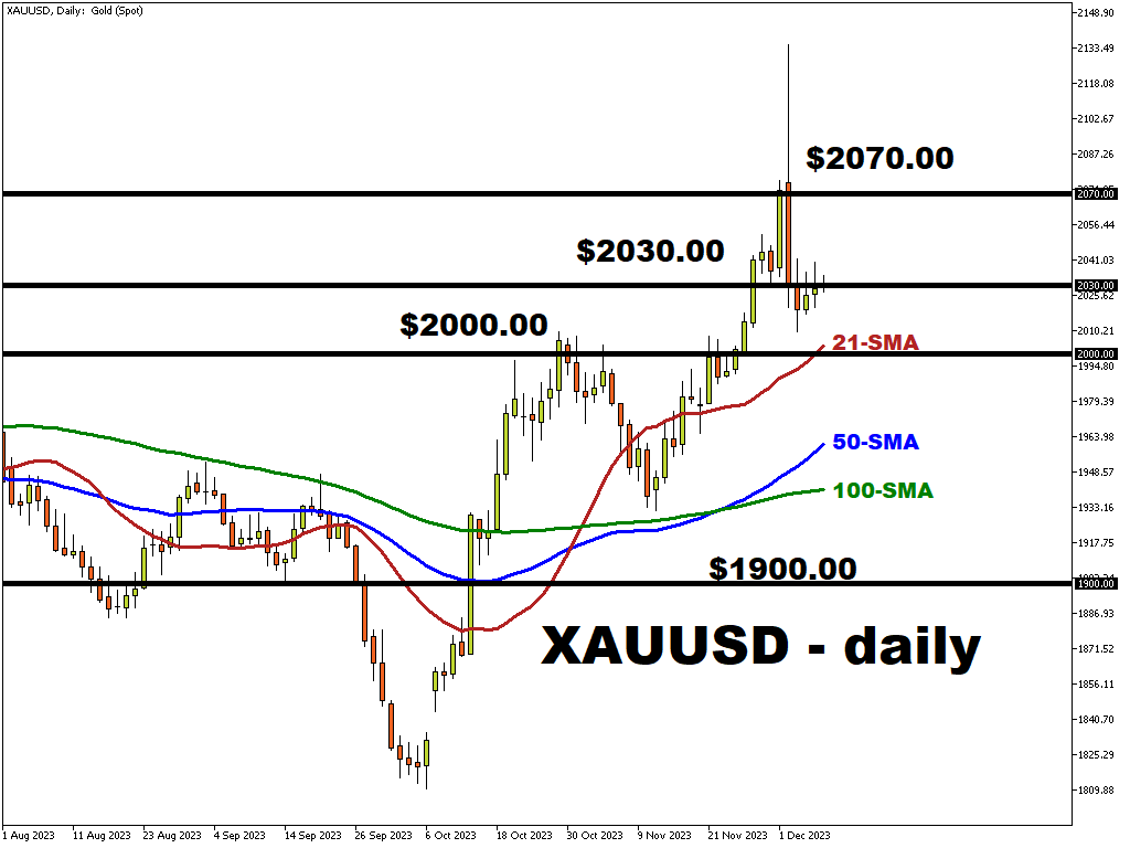 Gold bulls are trying to stabilize at $2030 despite the looming economic uncertainty, after briefly reaching an all-time high at 2134.80 during the trading session last Friday.