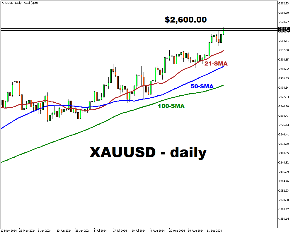 XAUUSD surges past $2,600 following Fed rate cut and geopolitical turmoil